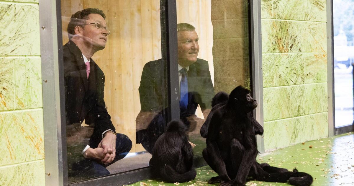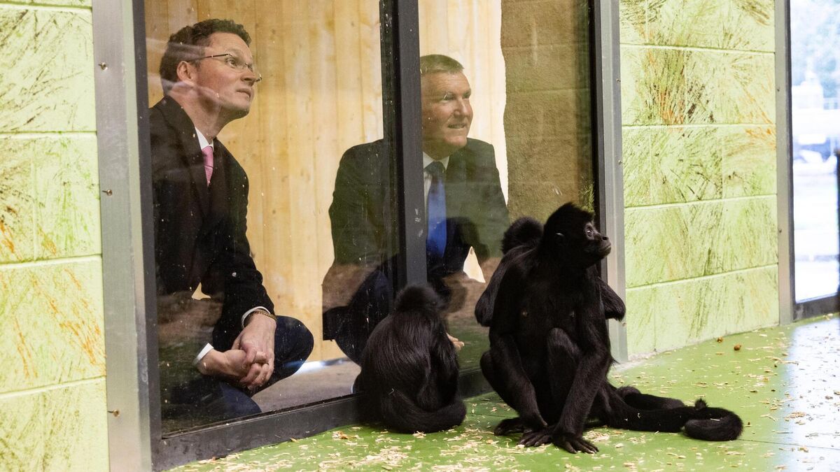 Patrick O’Donovan, TD, Minister for the Office of Public Works (OPW) and Michael McGrath TD, Minister for Public Expenditure and Reform in Fota Wildlife Park, Co Cork for the opening of the new Spider monkey habitat which was part-funded by the OPW. PIC Darragh Kane