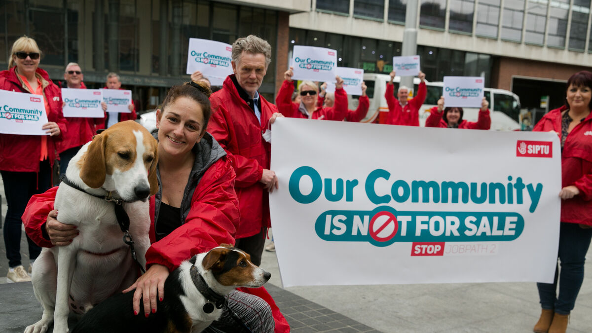 File image from earlier this year of a protest by SIPTU members, working in local employment services outside the Department of Social Protection, Dublin to highlight their opposition to plans to privatise these essential community services. Photo:Gareth Chaney/Collins