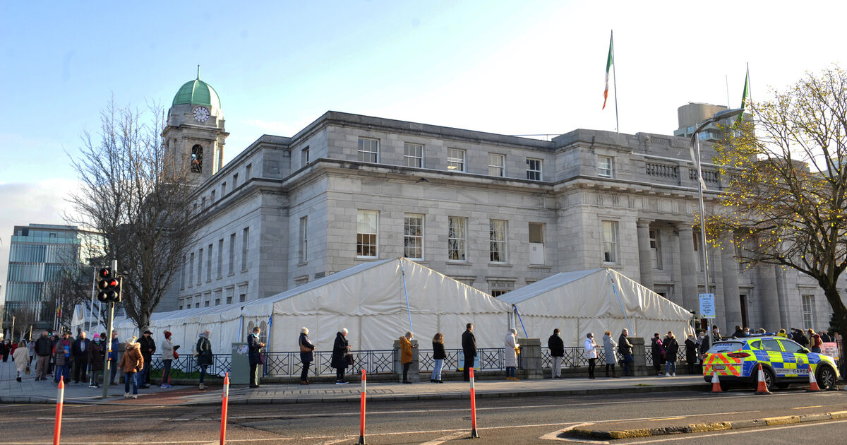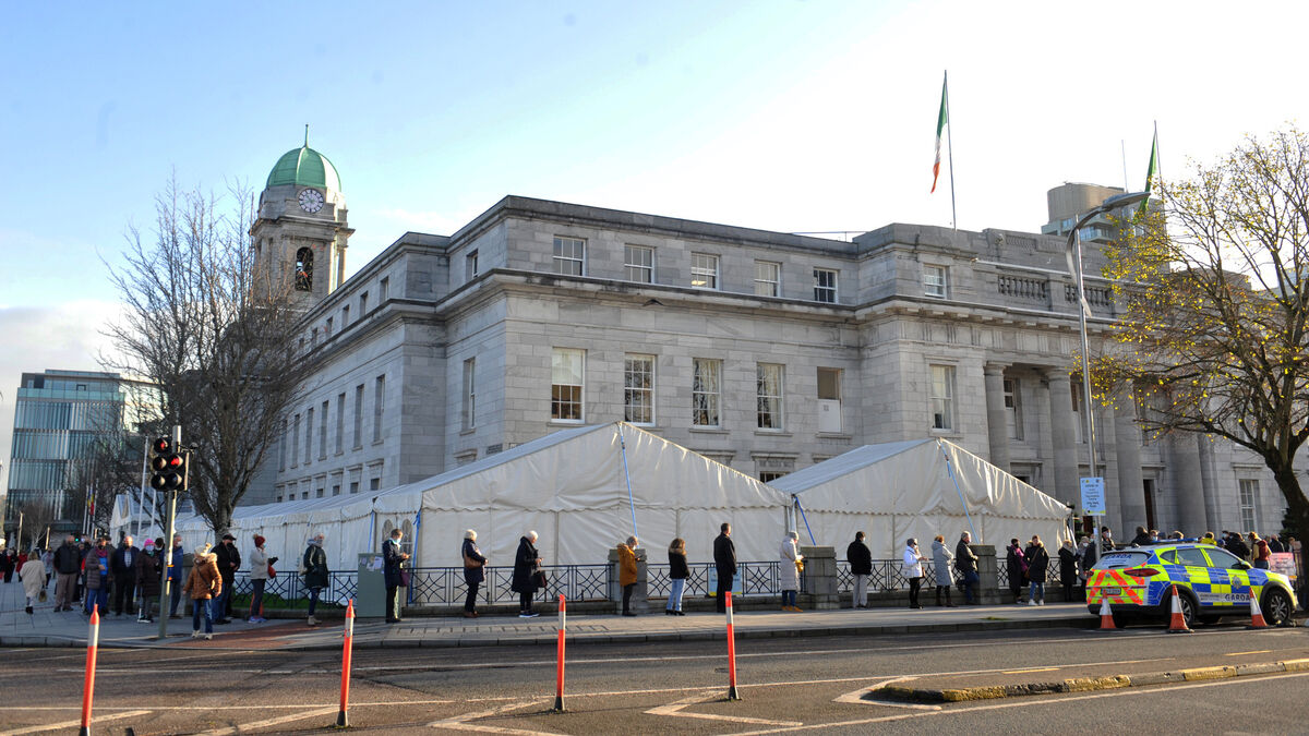 Queues at City Hall Cork for the walk-in Covid-19 vaccination clinic. The ISAG is calling for the vaccine programme to be accelerated.