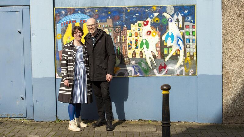 Frank O'Connor and Jude Sherry of anois.org design for the future pictured on John Redmond Street in front of the old Butter Exchange. Picture Dan Linehan
