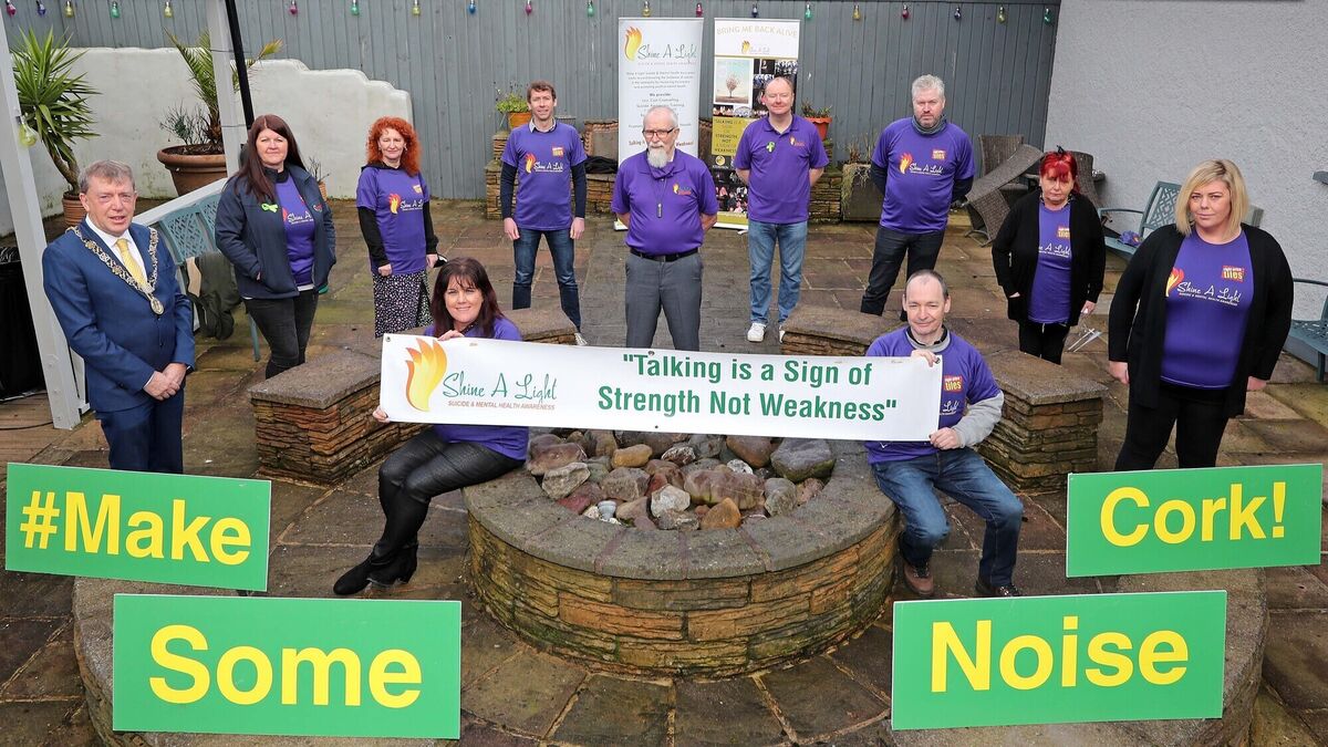 (front row) Cllr Tony Fitzgerald, Deputising for the Lord Mayor, Grainne Walsh, Sean Monaher, Aisling O'Driscoll, (back row) Jacquelinr Daly, Bernadette Morrison, Stephen Murphy, Joe D'alton, Mick Nugent, Mark Kelly and Fiona Murray, all Shine A Light Suicide & Mental Health Awareness members. Picture: Jim Coughlan.