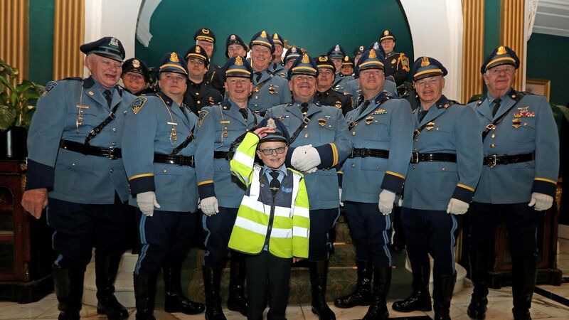 Little Blue Hero Cayden Dempsey enjoyed a morning with the Massachusetts State Police at the Imperial Hotel ahead of the St Patrick’s Day parade in Cork city on Thursday.