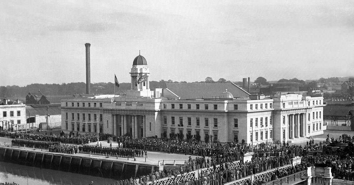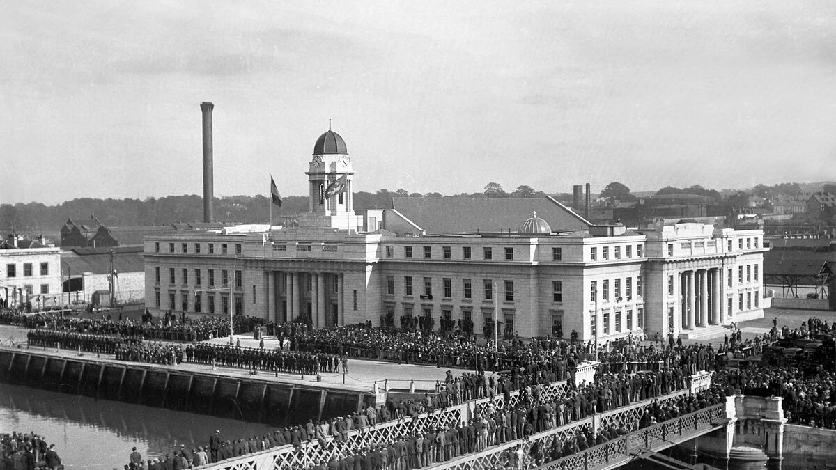 The scene at Cork City hall on the day of its official opening by Éamon de Valera in 1936.