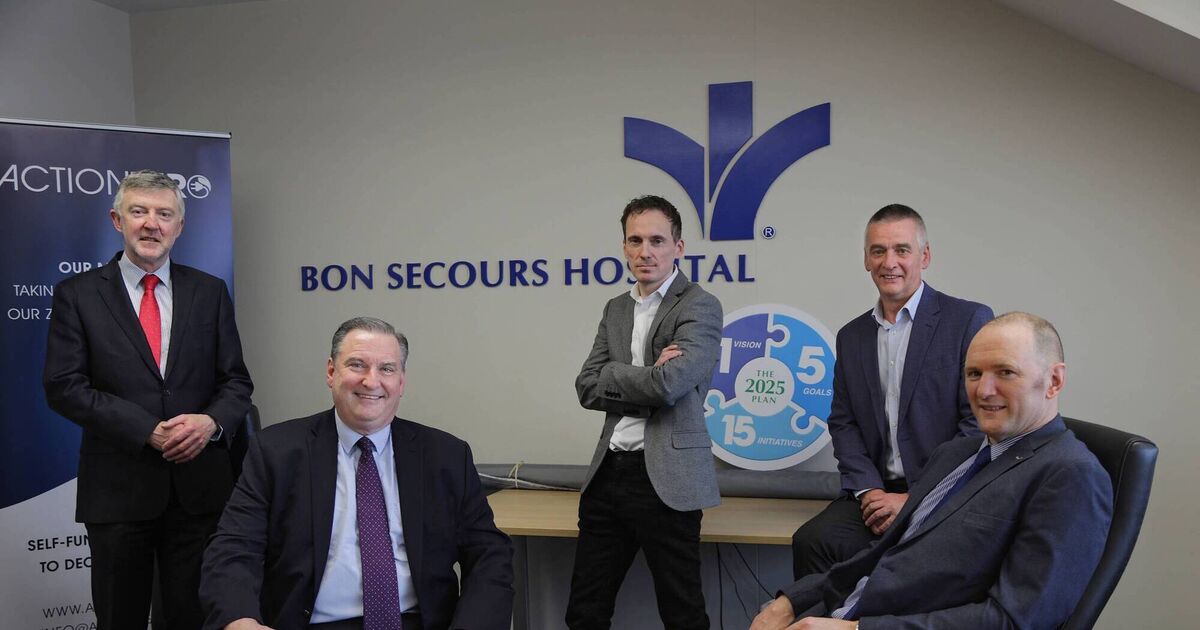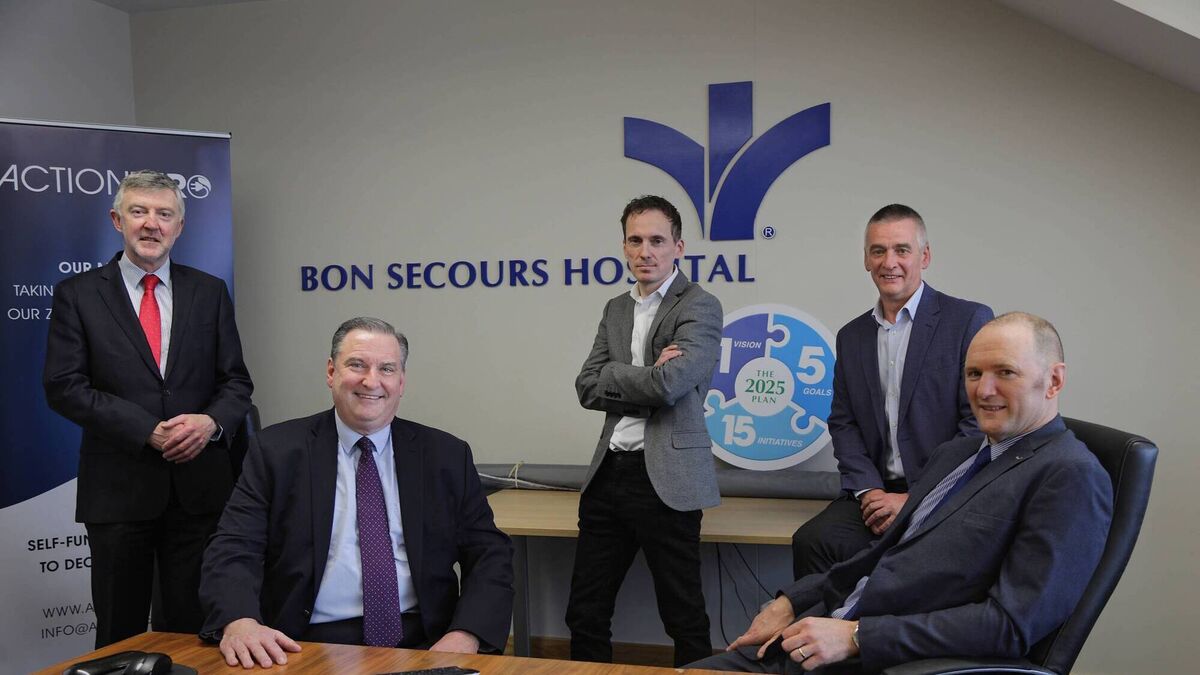 At the announcement from left, Paul Foley - Group Director of Supply Chain Bon Secours, Denis Collins - CEO ActionZero, Cormac Murphy- COO ActionZero, Gerry Ryan - Manager of Facilities & Maintenance Bon Secours, TJ O’ Connor - CEO Bon Secours Tralee. Photo: Valerie. O'Sullivan.