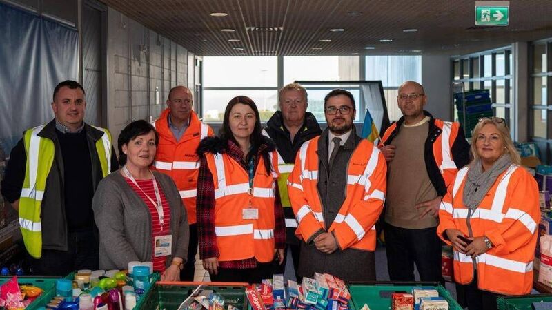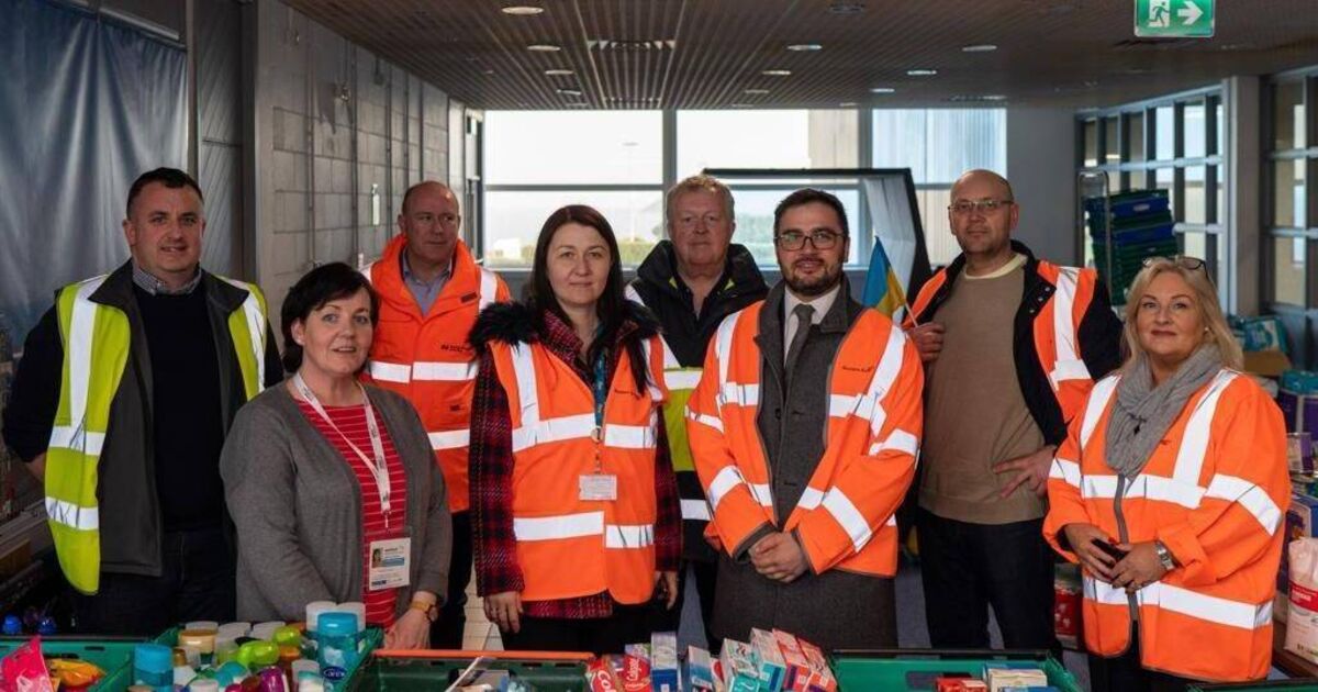 Volunteers behind soon to open Palyanytsya store in Merchants Quay, pictured at Rosslare Port while sending 11 trucks of aid to Ukraine.