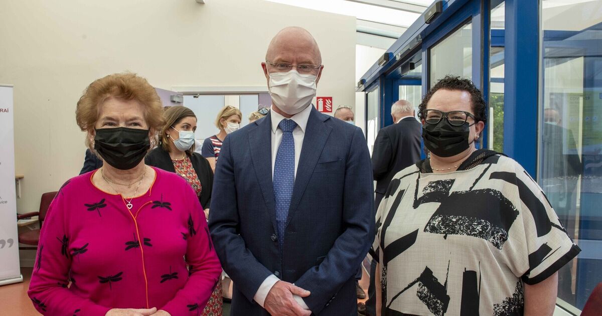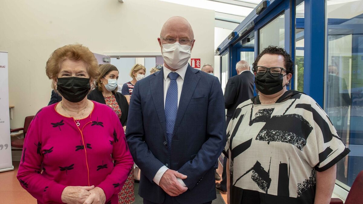 Minister for Health Stephen Donnelly, TD, visited the Cork Kerry Community Healthcare Integrated Care Hub for older people at St Finbarr’s Health Campus. With the minister are 82-year-old Sally Clarke, from Wilton, and her daughter Ingrid.