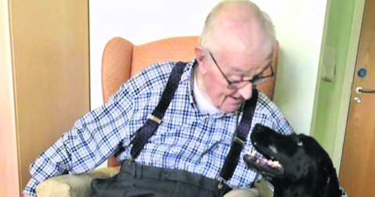 Noel Collins with Hugo, a therapy dog with Dogs for the Disabled.