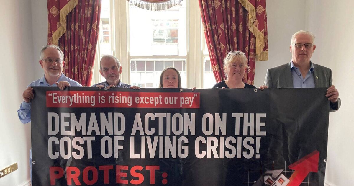 Launching Saturday's upcoming cost of living protest were Mick Barry TD, Don O'Leary, director of the Cork Life Centre, Carol Ann Bridgeman, former Debenhams worker, Caitríona Twomey, co-ordinator Cork Penny Dinners, and Thomas Gould TD.