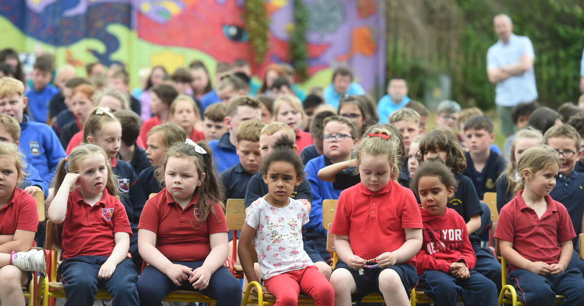 Infant pupils await the start of the ceremony at Strawberry Hill NS,. The official amalgamation of the boys and girls schools began on Friday 17th June 2022. Pic: Larry Cummins