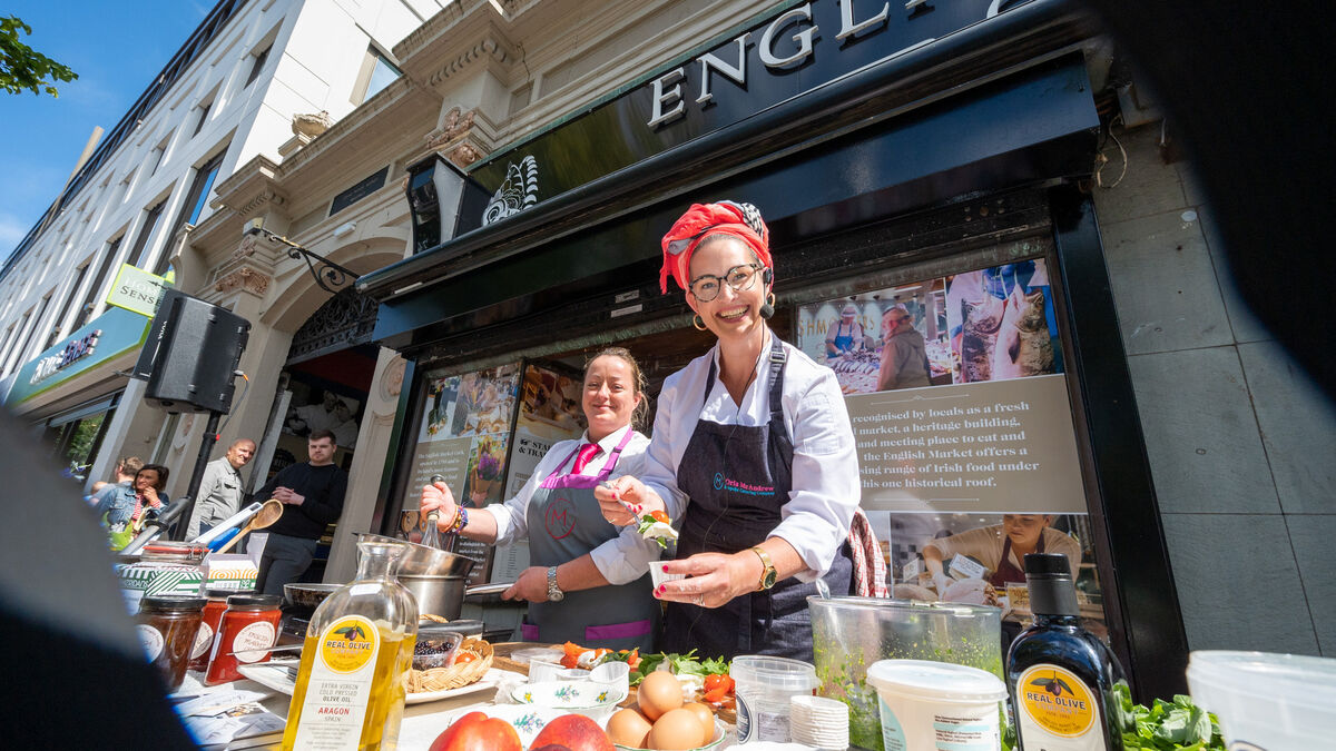 English Market Cooking Demo with Orla McAndrew and her assistant Ber Howard during Cork on a Fork Festival, a new food festival running across Cork City centre until Sunday, August 21. Photo Joleen Cronin