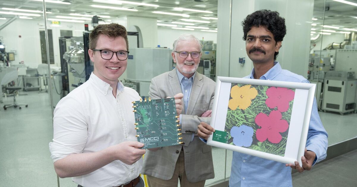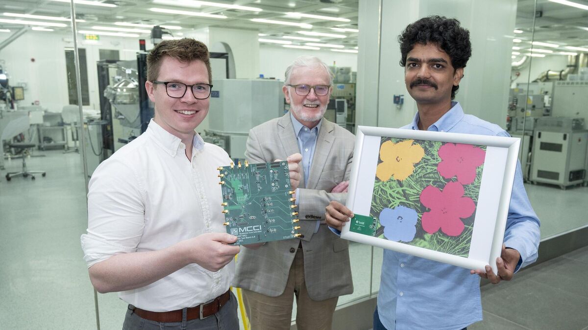 Professor Gerry Wrixon with inaugural winners of the Wrixon Research Excellence Bursaries, Anthony Wall and Dinesh Gawade. Along with fellow winner Cara-Lena Nies, recipients were granted the bursaries based on their accomplishments and achievements during their PhD or Master’s research at Tyndall National Institute. Photography By Gerard McCarthy.