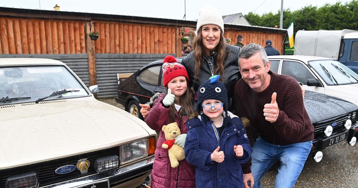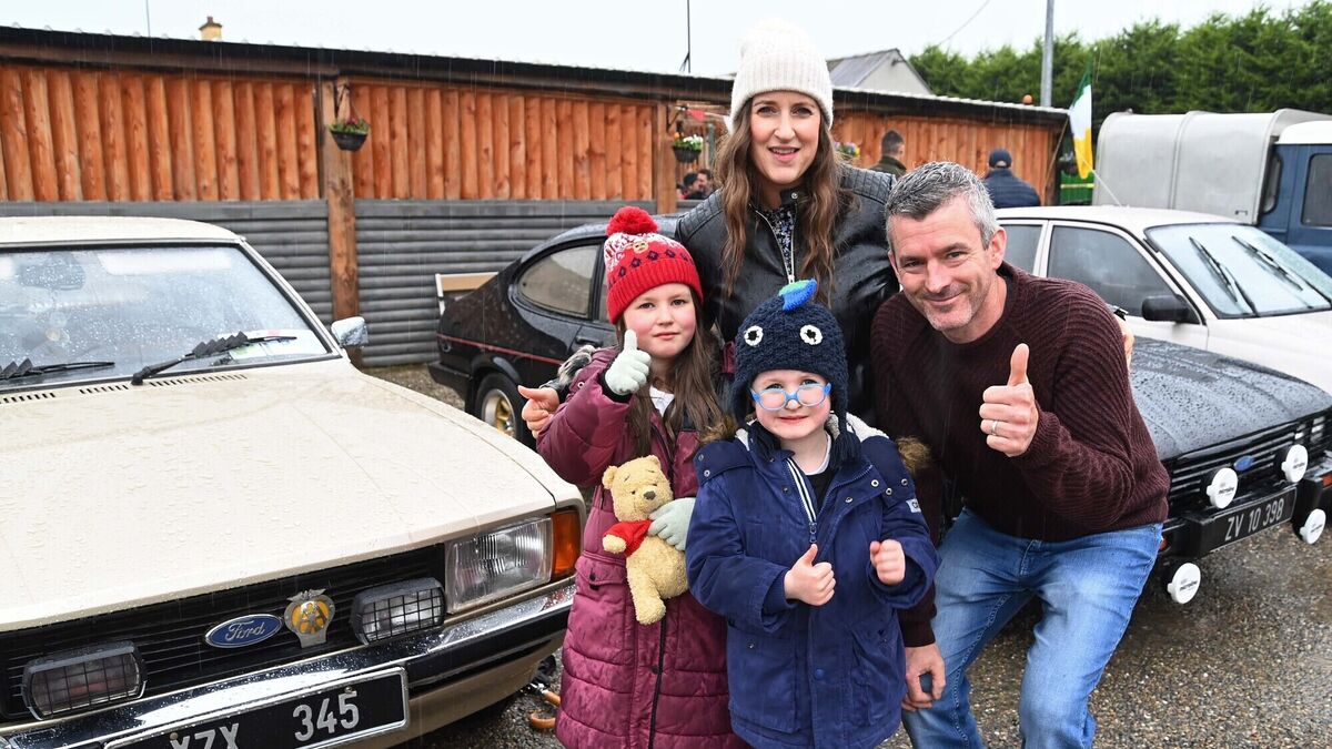 Oliver Barlow with his parents Simon and Siobhán and his sister Emily at the Oliver Barlow Charity Car Run from the Old Walls Bar & Restaurant, Liscarroll, Co. Cork. Picture Denis Minihane.
