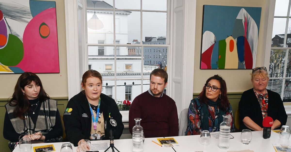 Speakers at a Cork Cost of Living press conference at Quay Co-op, Cork, ahead of a protest in Cork on November 12. From left: Erin O'Leary, UCC student; Sinéad Roche, UCC Students' Union; Donnchadh Ó Laoghaire, T.D.; Marie-Claire Jennequin and Caitríona Twomey. Picture: Denis Minihane.