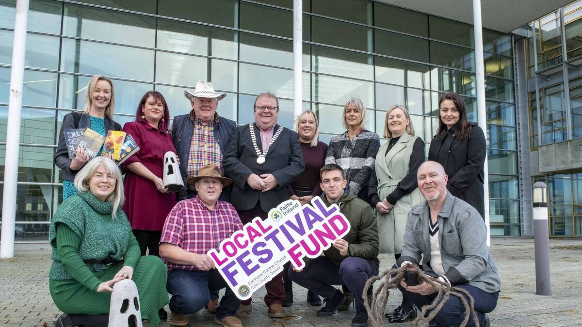 Back row, from left: Michelle Dunne, Spike Island Literary Festival; Ann-Marie Simpson, Doneraile Samhain Festival; Barry O’Brien, Ballydehob Country Music Festival; Cllr. Danny Collins, Mayor of the County of Cork; Sharon Conroy, Eimear O’ Neill, Rose Carroll, Jamie Cuthbert, all Cork County Council. Front row, from left: Myra Ryall, Doneraile Samhain Festival; Eddie Hodnett, Ballydehob Country Music Festival; Andrew Cullinane, Cork County Council and Ray O’C Callaghan, Doneraile Samhain Festival. Pic: Brian Lougheed