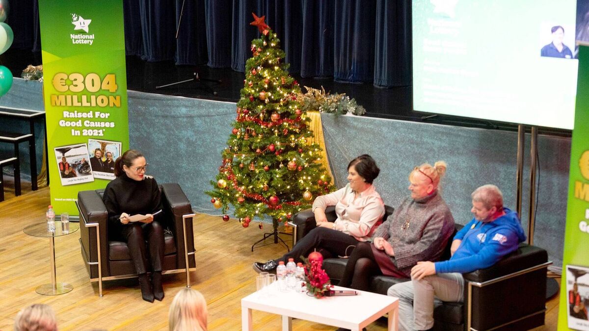 Gráinne Seoige speaking with special guests Karen O’Mahony of The Rainbow Club, Caitriona Twomey of Cork Penny Dinners and Graham Clifford of Sanctuary Runners at the Good Causes Great People live podcast in the Firkin Crane, Cork.