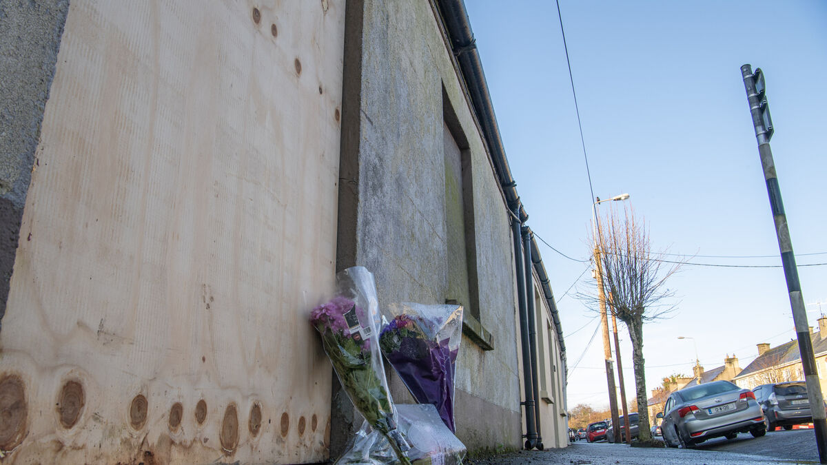 Flowers left outside the boarded-up vacant house on Beecher street, Mallow where the body of a man believed to have been dead for 20 years was discovered. Picture Dan Linehan