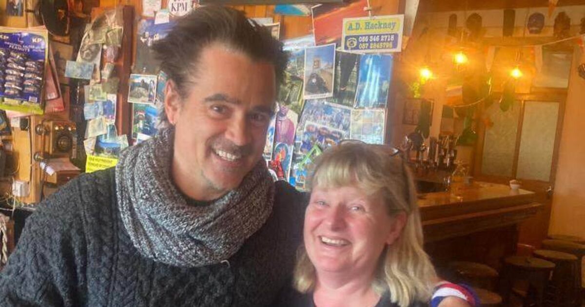 Adrienne MacCarthy meeting Colin Farrell decades after banning him from her pub MacCarthy's Bar in Castletownbere.