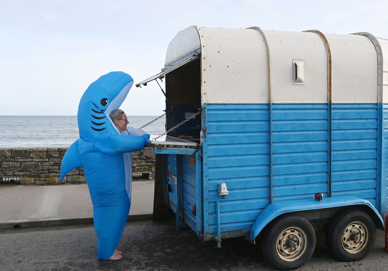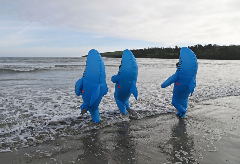 Some of the swimmers dressed up in shark costumes while others donned their swimming costumes for the event.
