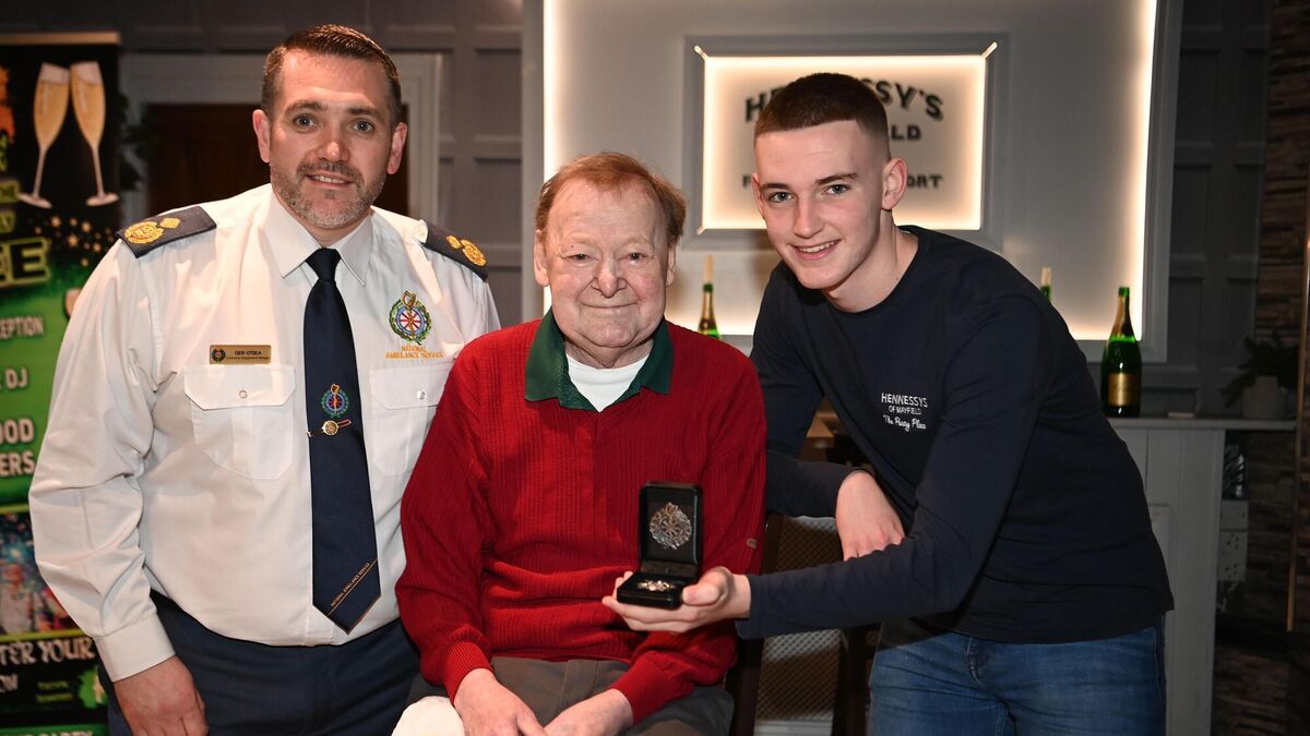 The 17-year-old was presented with a bravery medal from the National Ambulance Service to mark the occasion as part of an event at the Mayfield pub organised by Community Engagement Officer Ger O’Dea.