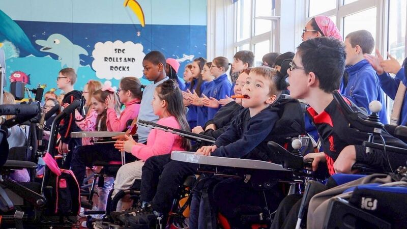 The pupils of School of the Divine Child, Lavanagh Centre and Scoil Ursula, Blackrock, performing their LÁMH version of Aslan’s ‘Crazy World’. Supported by Music Generation Cork City, Music Mash Up and Cork Academy of Music. Photo Credit: Seán Downey