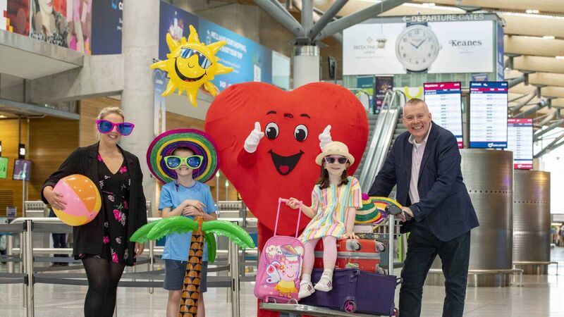 Pictured at Cork Airport to mark the commencement of the 2023 Summer Schedule are brother and sister Nathan (8) and Robyn Lougheed (5), all set to take-off on their summer holidays. Also included are Tara Finn, Head of Aviation Business Development, Cork Airport; Niall MacCarthy, Managing Director, Cork Airport and the Cork Airport mascot. This summer, 1.2 million seats will be available across 44 scheduled routes from Munster’s busiest and best-connected airport. Pic: Brian Lougheed