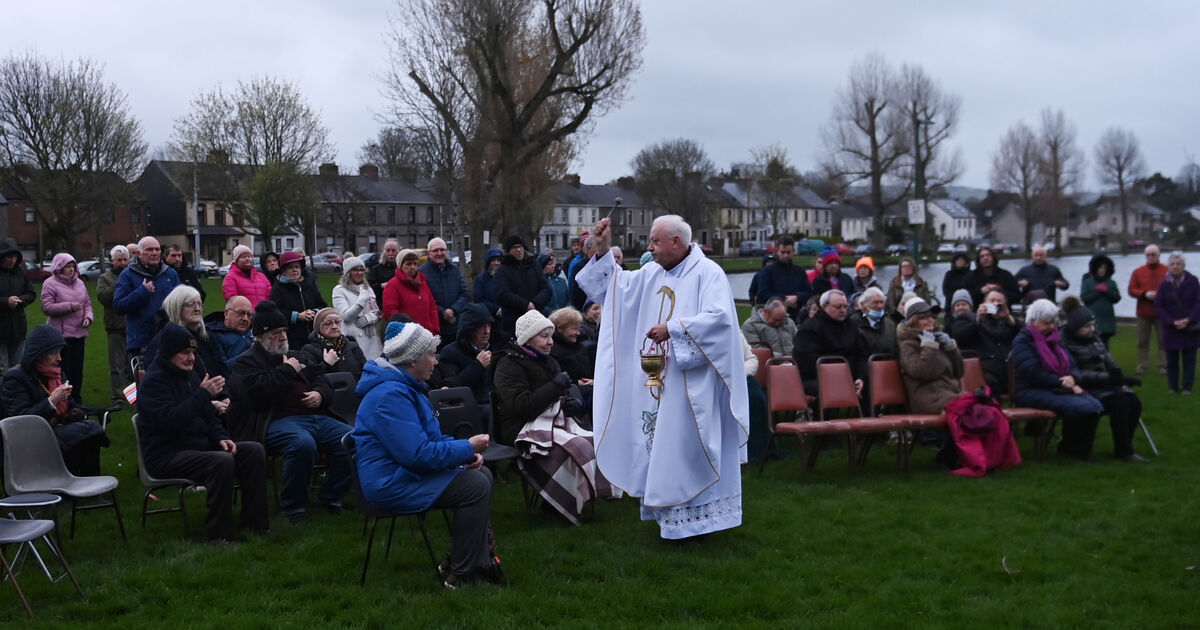 Early risers gathered at the Lough at dawn to celebrate Easter Sunday mass today.