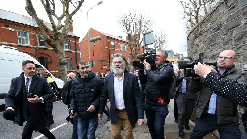Pictured is Gerry The Monk Hutch being followed by the media and reporters after being freed following his court case at the Criminal Courts today. Photo: Sasko Lazarov/RollingNews.ie