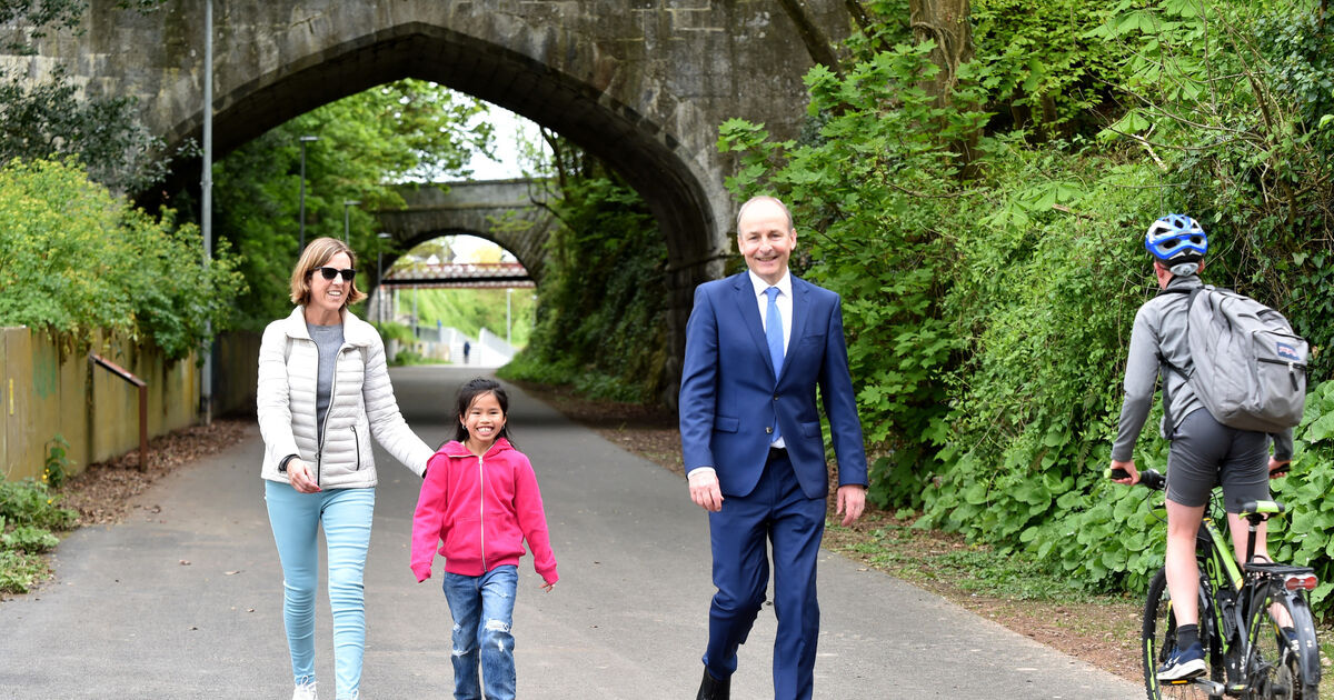 Tanaiste Michéal Martin chatting Irene Keohane her daughter Yen Moynihan from Blackrock at the opening of phase one of the Marina to Passage West Greenway on Friday. Picture; Eddie O'Hare