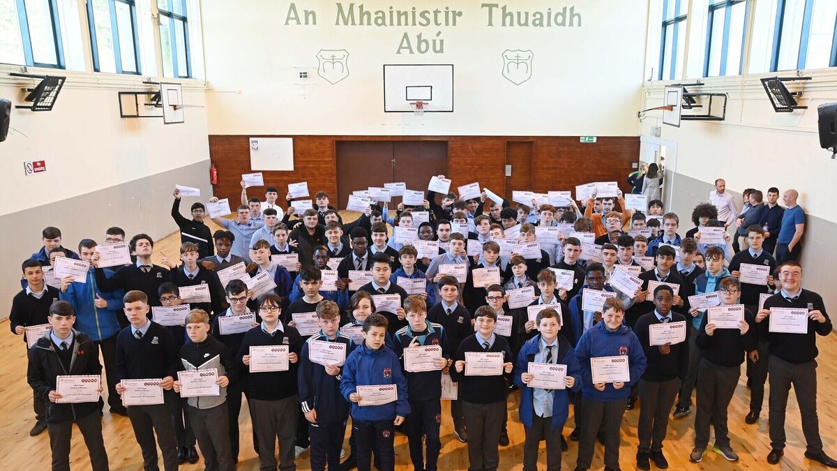 Students at North Monastery Co-educational Secondary School, Cork, who were presented with certificates on completion of the CPR course.