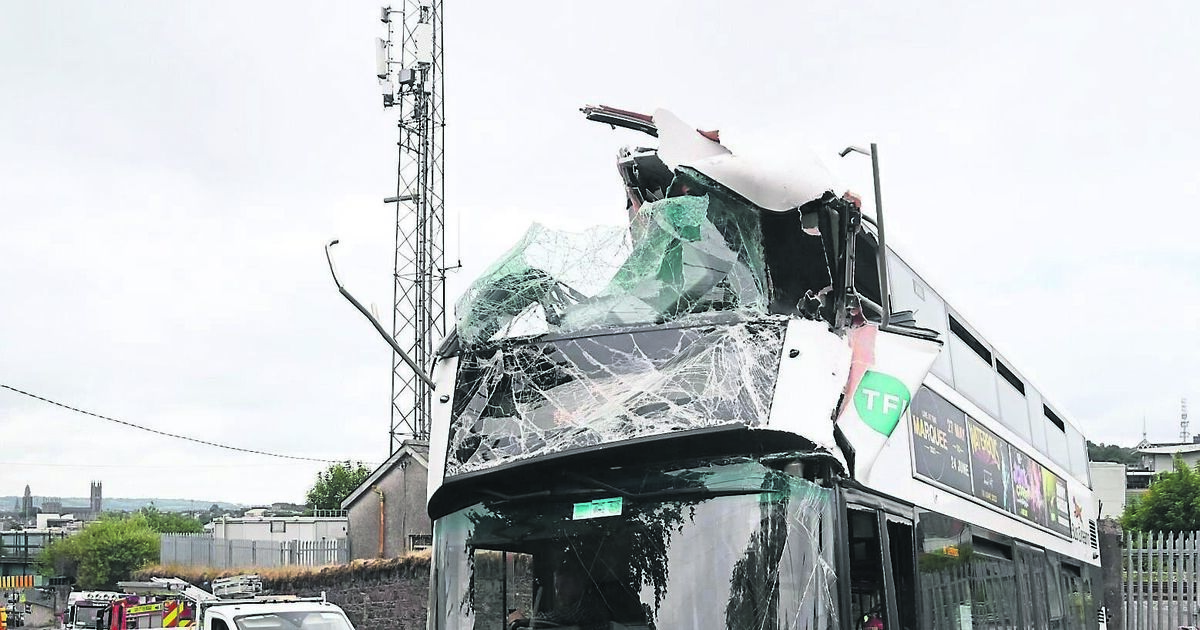 The Bus Éireann vehicle was heading towards Blackpool when it collided with a railway bridge at the end of Dublin Hill shortly after 9am.