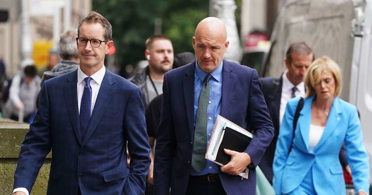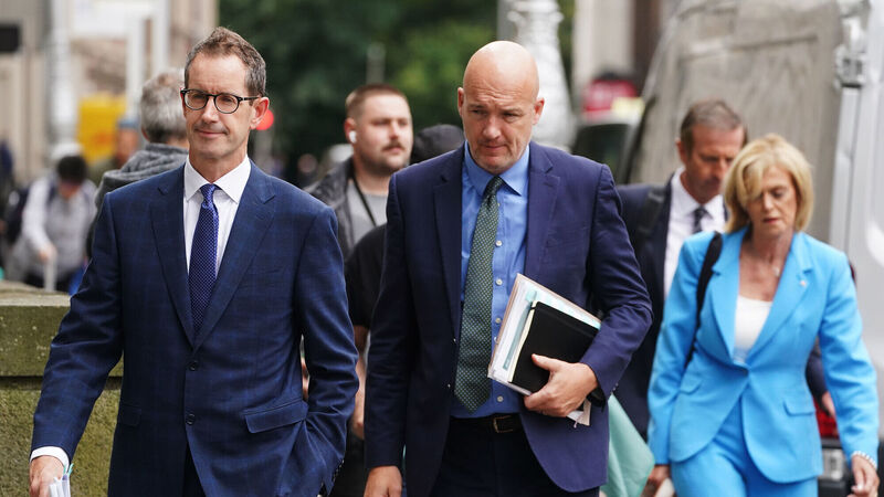 RTE Interim Deputy Director General Adrian Lynch (left), Commercial Director Geraldine O'Leary (right), and Strategy Director Rory Coveney (centre) arriving to give evidence to the Committee on Tourism, Culture, Arts, Sport and Media at Leinster House, Dublin, on the controversy around Ryan Tubridy's misreported salary payments. Photo credit should read: Brian Lawless/PA Wire