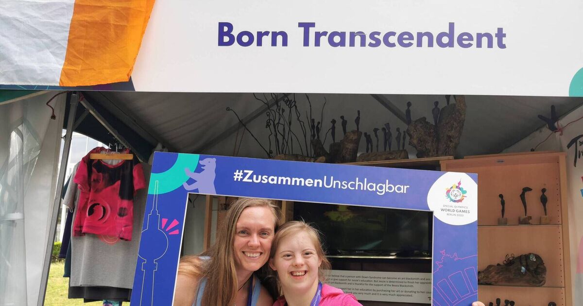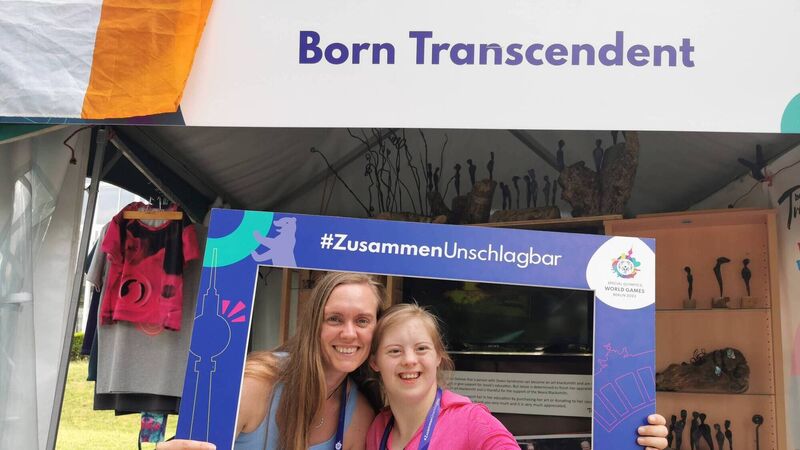 Jessie Waschkowitz at the The 2023 Special Olympics World Summer Games with her business partner Suki Blochinger from Born Transcendent. The pair travelled together to exhibit and sell some of Jessie's work at the event.
