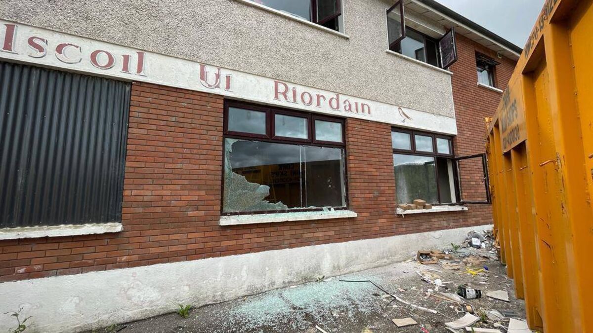 The damage caused to the former school building in Coolroe in Ballincollig in last night’s suspected arson attack, which caused little internal damage thanks to the swift response of Cork City Fire Brigade.