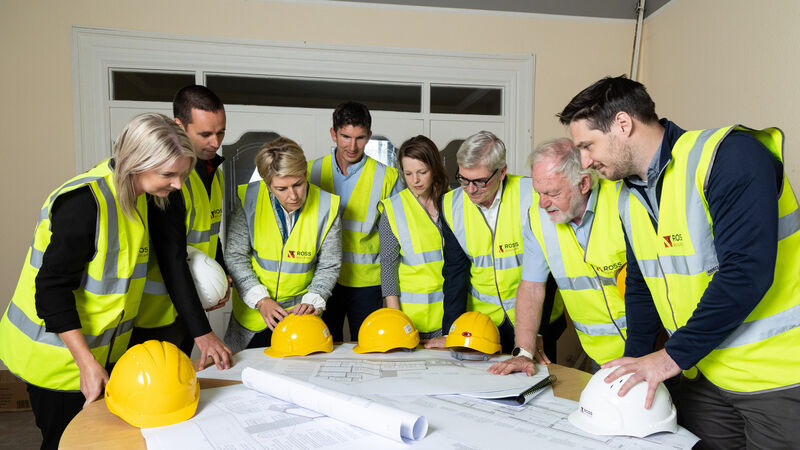 Deirdre Finn, Head of Fund-raising Mercy Hospital Foundation, Ray Browne, Project Manager Ross Building, Sandra Daly, CEO Mercy University Hospital, Niall Walley,Deasy Walley Partnership & Project Manager, Dr Tara Houlihan, Senior Clinical Psychologist, Psycho-oncology, Mercy University Hospital, Eoin Tobin, Chair of Board, Mercy Hospital Foundation, Paschal McCarthy, CEO, Mercy Hospital Foundation and Eoin Kelleher, Ross Building marking the commencement of building works on the property at 9 Dyke Parade, Cork, which will be converted into the long awaited, state-of-the-art, Mercy Cancer CARE Centre. PIC Darragh Kane