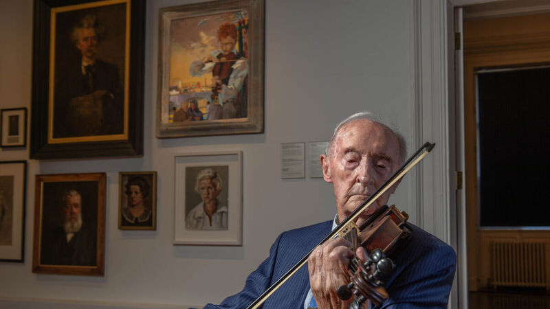 Fiddle player Denis, 97, impresses at Cork's Crawford Art Gallery