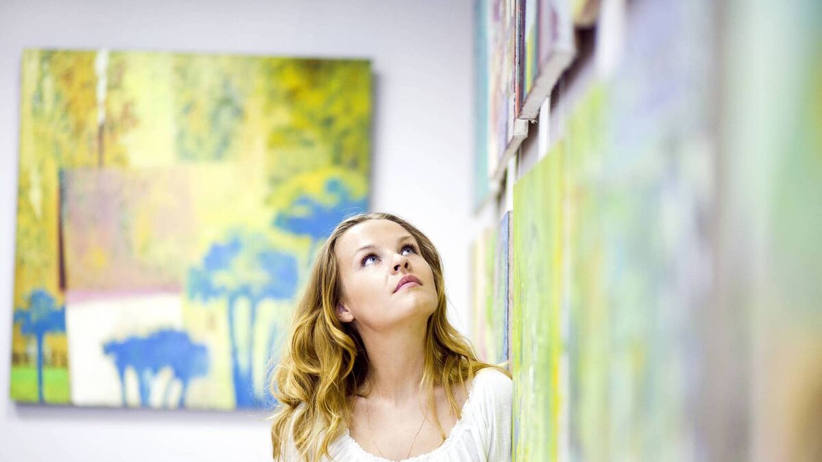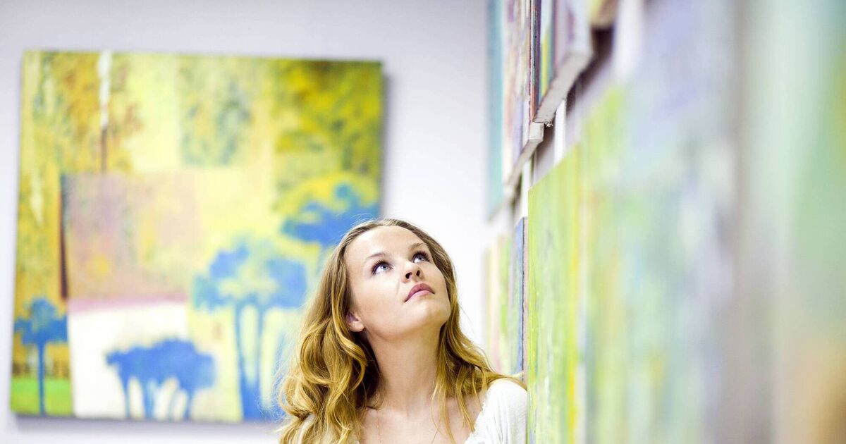 Female artist of paintings stock istock art gallery