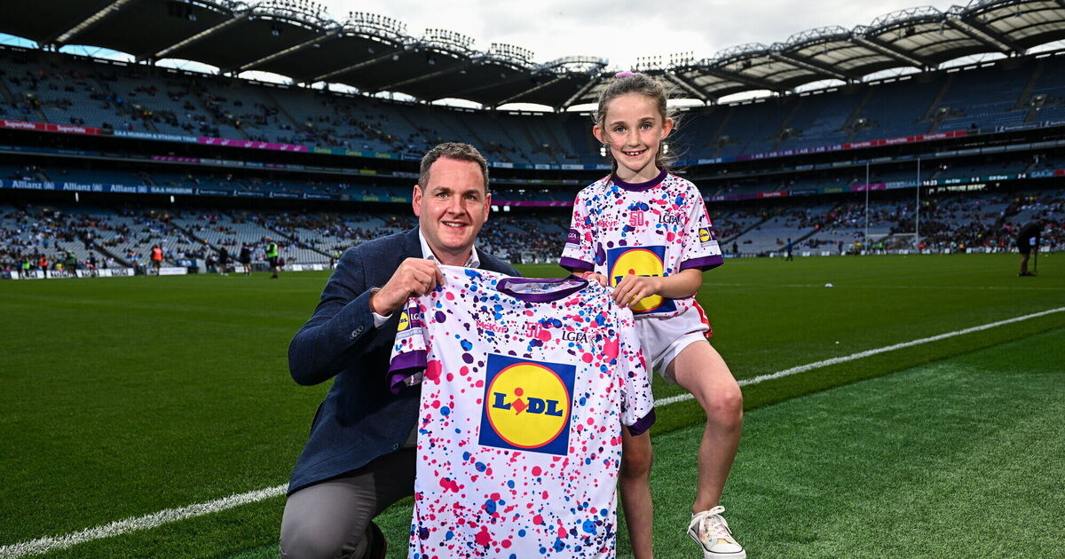 The Cork girl, who plays Ladies Gaelic Football with Courcey Rovers, was presented with the first of her jersey design to be produced by Lidl Ireland CEO J.P. Scally in Croke Park.