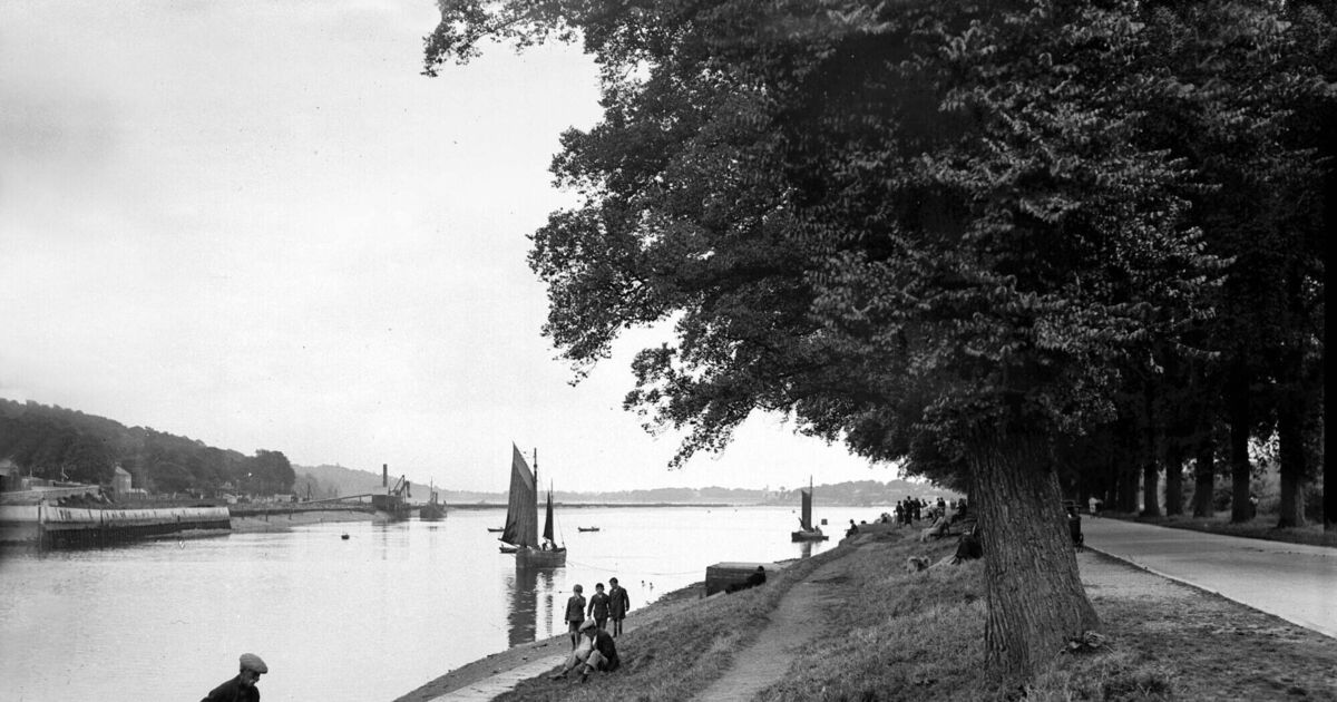 A plan was put into place to deepen the channel — a dredger was purchased and silt that was taken from the channel was redeposited behind the wall. The continuing dumping of the mud eventually led to the creation of the Marina as we know it today; and in the 1850s a most beautiful line of elms was planted on both sides of the promenade.
