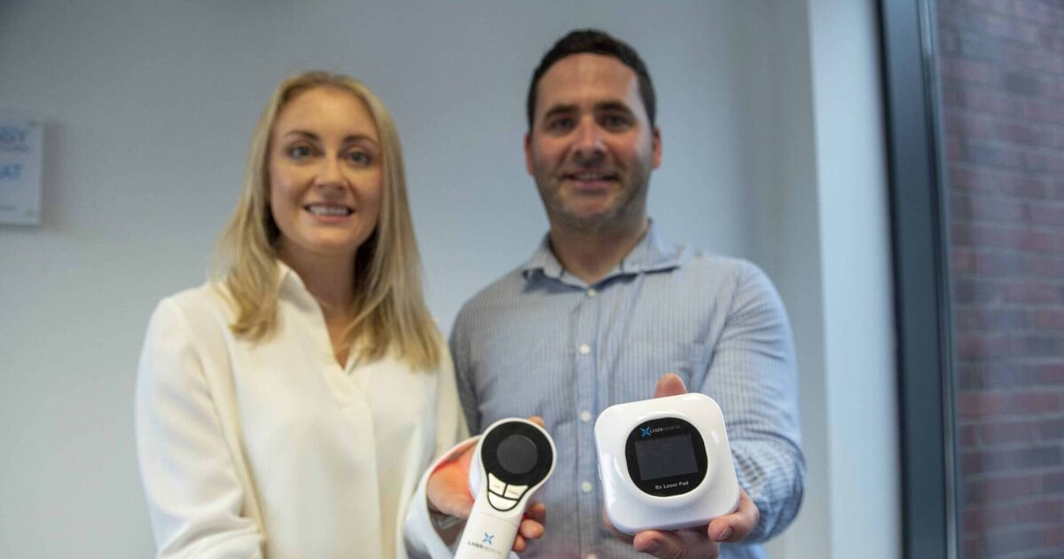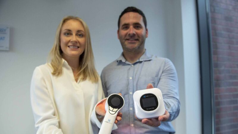 Dr Sarah Kingston GP, and Shane Hennessy, Chartered Physiotherapist, with laser-powered pain relief products sold by Laser Medical, the only Irish company to distribute the devices. Pic: Brian Lougheed