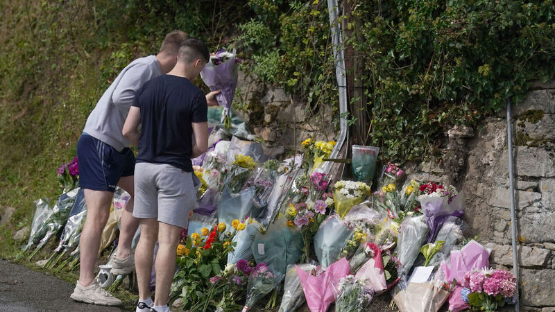 Flowers and tributes left at the scene in Clonmel, Co Tipperary where four young people died in a car crash, while on the way to exam results celebrations. Luke McSweeney, his sister Grace McSweeney, Zoey Coffey and Nicole Murphy, died at the scene after the car they were travelling in struck a wall. Picture date: Saturday August 26, 2023.Photo: Damien Storan/PA Wire