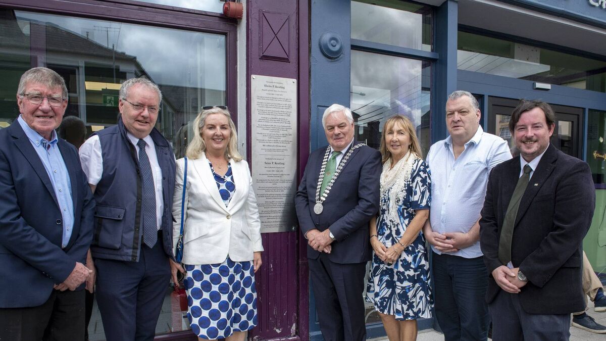 From left: Cllr. Ian Doyle; Michael Moynihan, TD; Oonagh Keating, Grandniece of Sean P Keatiing; Cllr. Frank O'Flynn, Mayor of the County of Cork; Siobhán Keating, Grandniece of Sean P Keating; Cllr. Bernard Moynihan and Conor Nelligan, Heritage Officer and Commemorations Coordinator, Cork County Council. Pic: Brian Lougheed