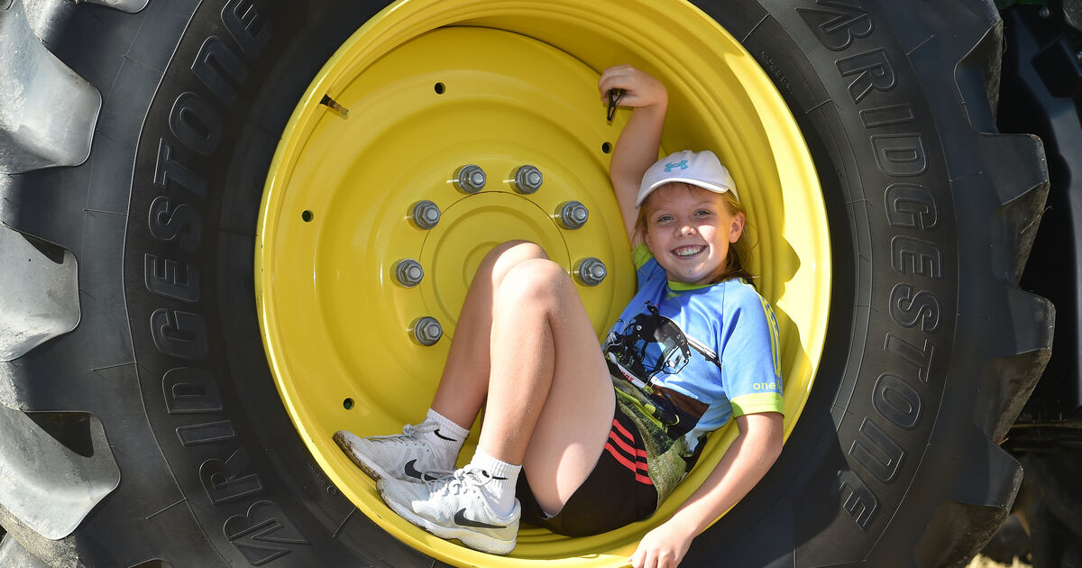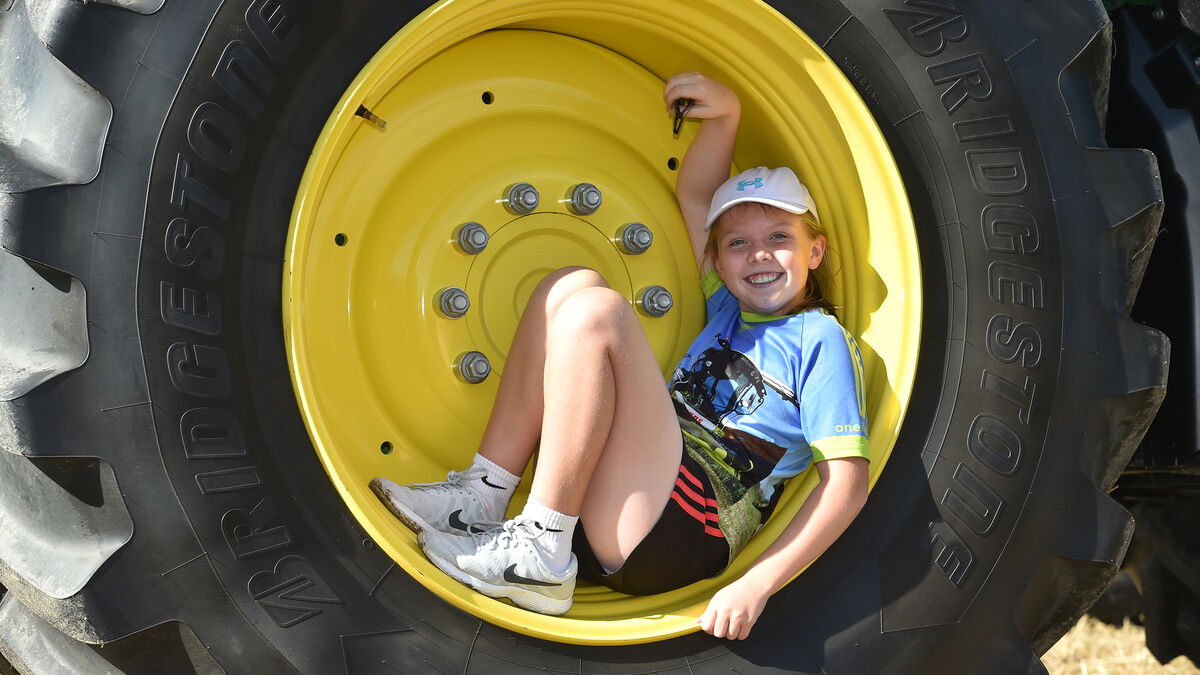 Sophie Holland loving her hideaway in the tractor wheel at the annual Ahiohill Vintage Harvest Day in aid of the Autism unit at Dunmanway. Picture: Dan Linehan