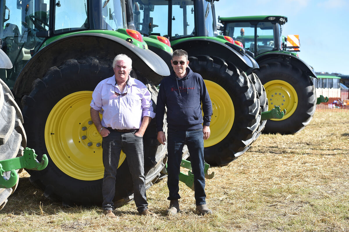 John O'Brien and Finbarr O'Donvan at the annual Ahiohill Vintage Harvest Day in aid of the Autism unit at Dunmanway. Picture: Dan Linehan