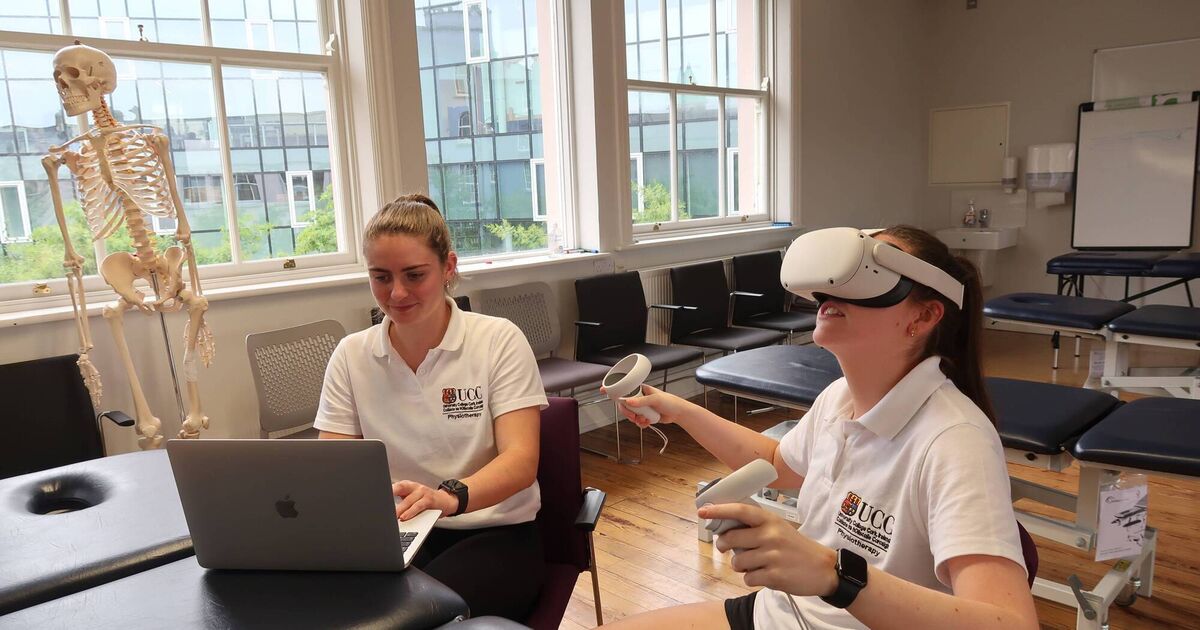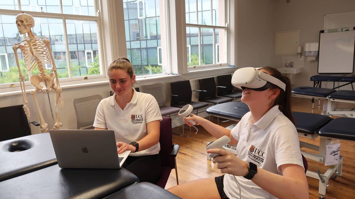 UCC Second Year MSc Physiotherapy students Moira Barrett and Carrie Gilligan using the Scale-Up4Rehab digital technologies in their physiotherapy training.