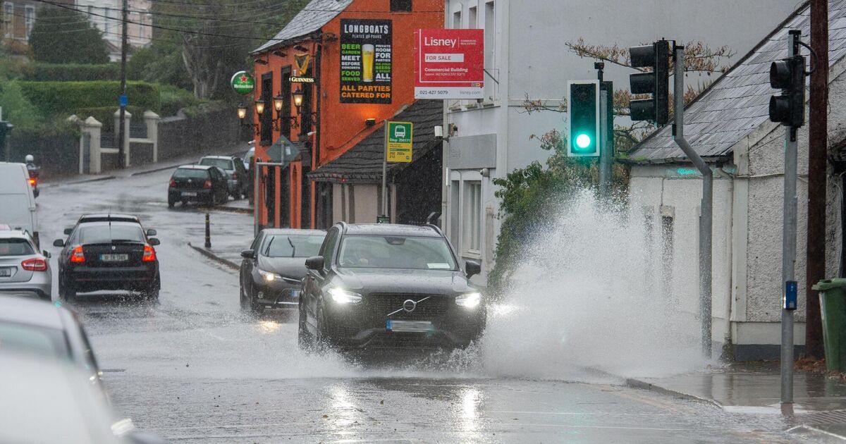 A car making its wat through the floods in Ballintemple, cork as Storm Babet hits and Met Éireann issued a weather warning for heavy rain and localised flooding. Picture Dan Linehan