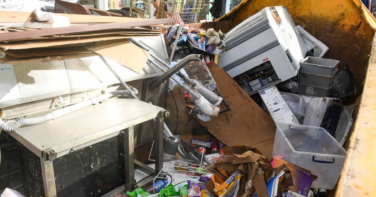 One of the many skips filled with damaged goods as a result of the flooding in Midleton Co Cork.