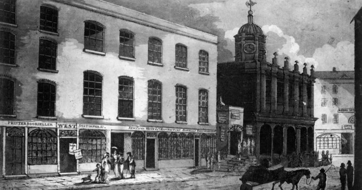 This lush romantic illustration shows a young Castle St, formerly Castle Lane (where the Medieval Key of Cork was situated) in the early years of the 18th century with its Tontine Buildings and their ground floors occupied by printers, publishing houses, booksellers’ shops, coffee shops and a tavern where merchants, writers, poets and ballad singers congregated. The western end of the street shows the ornate building of the Exchange and underneath its shadow is a sedan chair and its chairmen waiting for a fare. Picture: Courtesy Cork City Library – Historian, Michael O'Leary Collection
