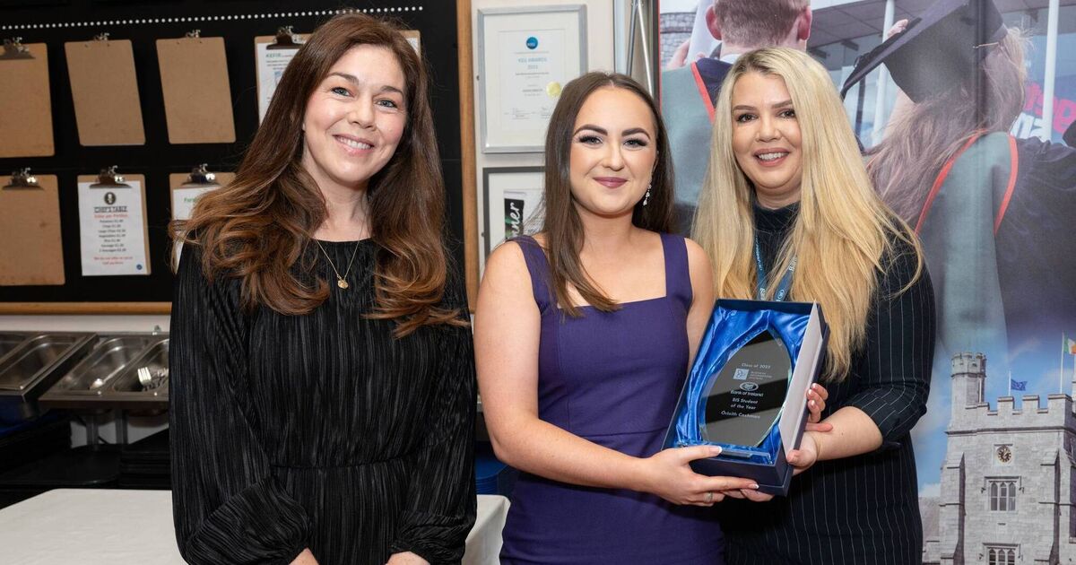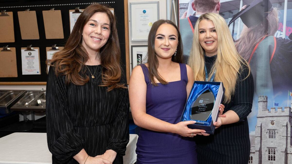 Dr Ciara Fitzgerald, co-director of the BIS degree programme; Orlaith Cashman the Bank of Ireland BIS Graduate of the Year 2023; and Aideen Broderick, Manager Bank of Ireland UCC at a special breakfast to honour the Business Information Systems (BIS) Class of 2023 at University College Cork. Photo: John Roche