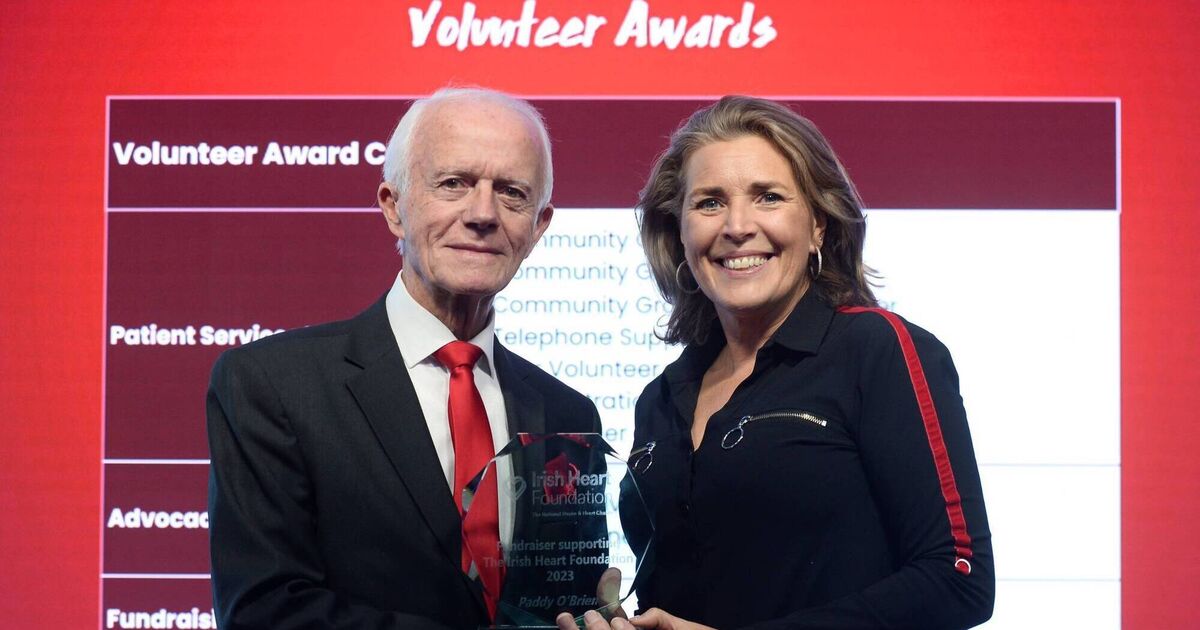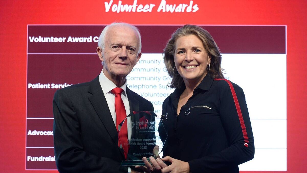 Paddy O’Brien receiving the 'Fundraiser Supporting the Irish Heart Foundation' award from Anne Riordan, public engagement manager, Irish Heart Foundation, at the charity’s inaugural National Volunteer Conference.