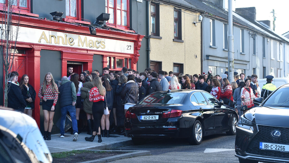 The queue outside Annie Mac's bar during the student's Christmas day celebrations on the Bandon Road, Cork. Picture Dan Linehan